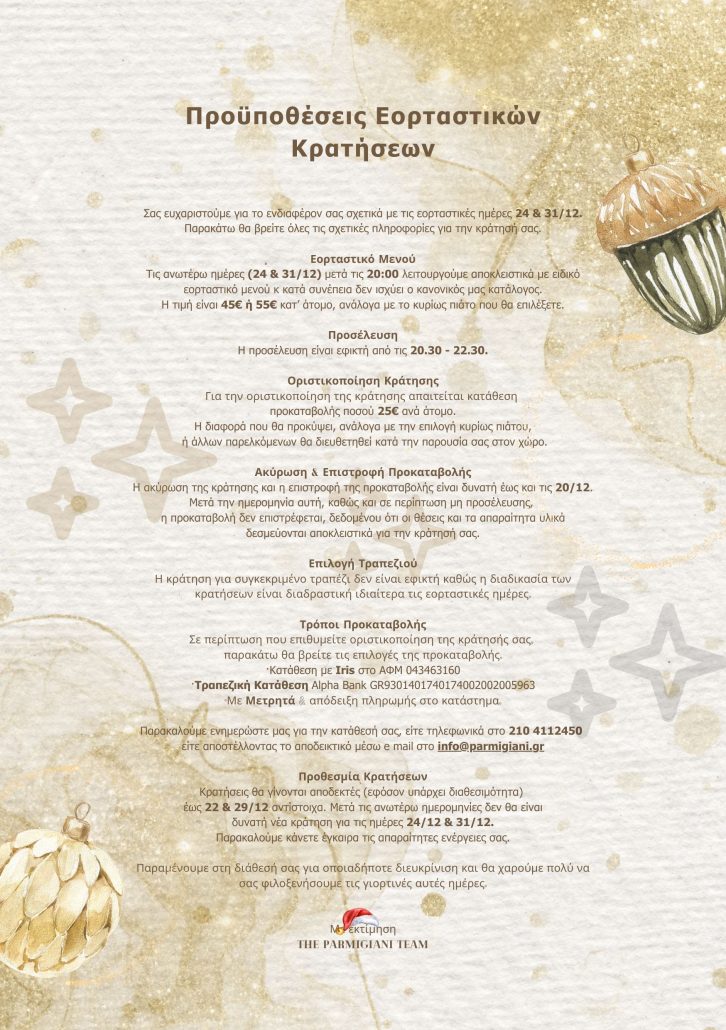 Δείτε παρακάτω περισσότερα για τις εορταστικές κρατήσεις!